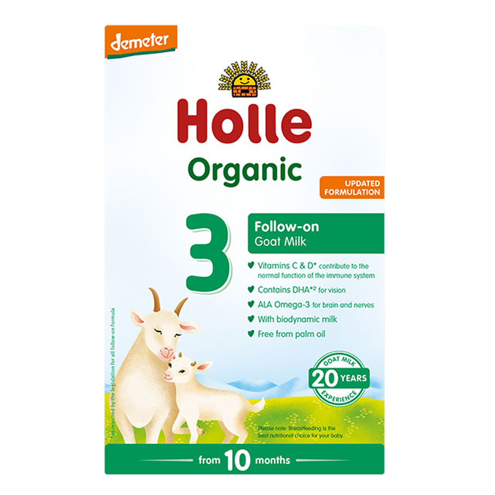 Η βρεφική τροφή με βάση το κατσικίσιο γάλα Νο3 είναι κατάλληλη για παιδιά από 10 μηνών μέχρι και το τέλος του τρίτου έτος της ηλικίας τους, ως μέρος μιας μικτής διατροφής (θηλασμού και τροφής σε μπουκάλι). Χρησιμοποιείται ως συνέχεια του βιολογικού κατσικίσιου γάλακτος της Holle No2. Μπορεί επίσης να χρησιμοποιηθεί για να προετοιμάσετε τους βιολογικούς πουρέδες της Holle για παιδιά .