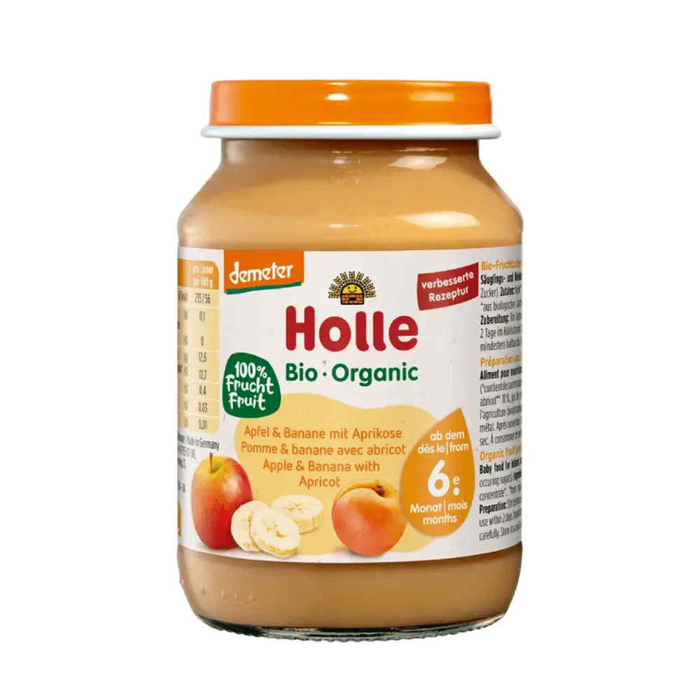 Συστατικά: Φρούτα 56% (μήλο ** 26%, μπανάνα ** 16%, συμπυκνωμένος χυμός αχλαδιού *, βερίκοκο ** 4%), νερό, αλεύρι ρυζιού ολικής άλεσης *, χυμό λεμονιού *
