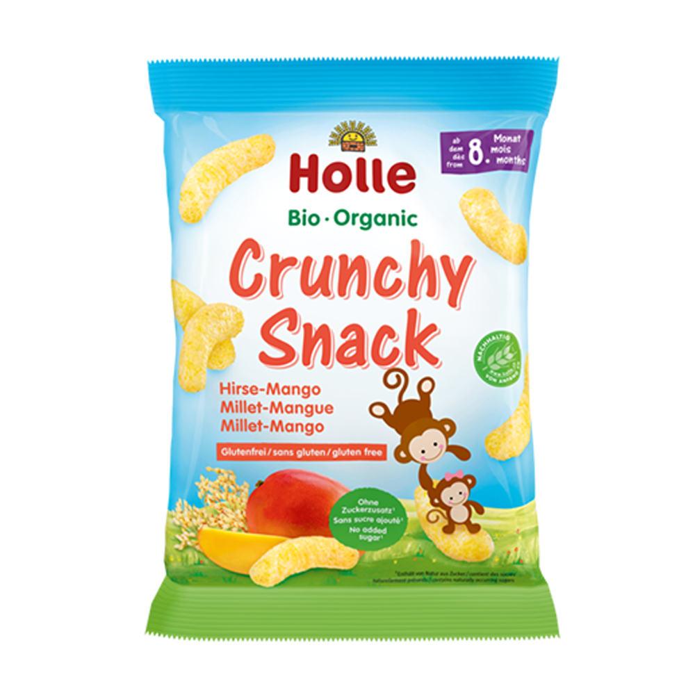Το τραγανό σνακ της Holle είναι παρασκευασμένο από οργανικά δημητριακά. Λιώνουν στο στόμα εύκολα και είναι ιδανικά σε μέγεθος για τα χεράκια του μωρού ώστε να μπορεί τα πιάσει.