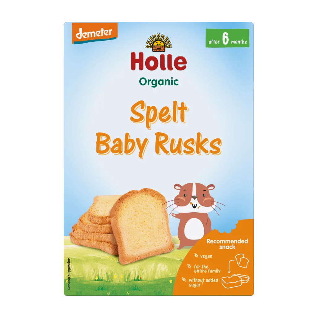 Οι φρυγανιές για μωρό της Holle είναι παρασκευασμένες από υψηλής ποιότητας συστατικά, βιολογικής και βιοδυναμικής πιστοποίησης. Ήπια γεύση και εύκολες στο μάσημα, αυτές οι φρυγανιές είναι ένα ιδανικό σνακ για να βοηθήσετε το μωρό σας να να εκπαιδεύσει τους μύες του σαγονιού του και να εξασκήσουν το μάσημα και το δάγκωμα.