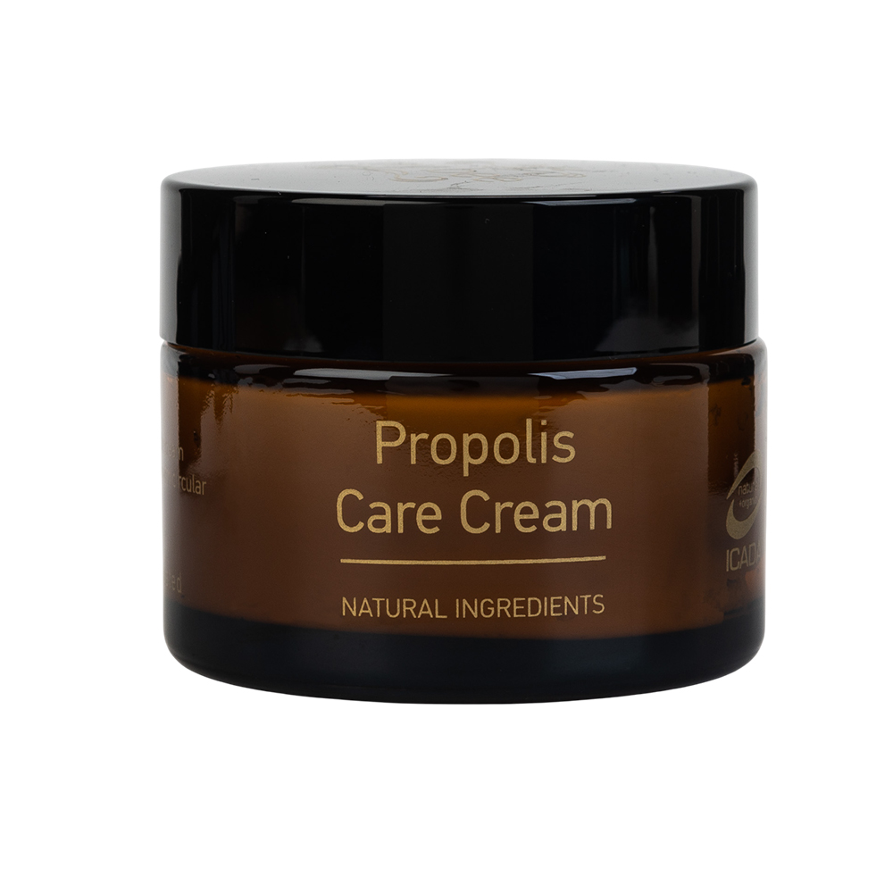 My Bee Propolis Care Cream. Κρέμα πολλαπλής χρήσης με απαλή υφή, που το δέρμα την απορροφά εύκολα και γρήγορα. Πλούσια σε πρόπολη χαρίζει απαλότητα σαν μετάξι και ευχάριστο άρωμα στο δέρμα. Είναι καταπραϋντική, επουλωτική, αναπλαστική και αντιμετωπίζει αποτελεσματικά διάφορους δερματικούς ερεθισμούς, όπως ξηροδερμία, έκζεμα, σύγκαμα, εκδορές και σκασίματα. Αποτελεί επίσης μία εξαιρετική αντιγηραντική κρέμα, που περιποιείται και προστατεύει ταυτόχρονα την επιδερμίδα μας. Λειαίνει γραμμές και ρυτίδες, καταπολεμά την ακμή, αλλά και τις δυσχρωμίες του δέρματος, ενώ αυξάνει την ελαστικότητά του. Αποτελεσματική για χρήση μετά την ηλιοθεραπεία. Κατάλληλη για όλες τις ηλικίες και για παιδιά.