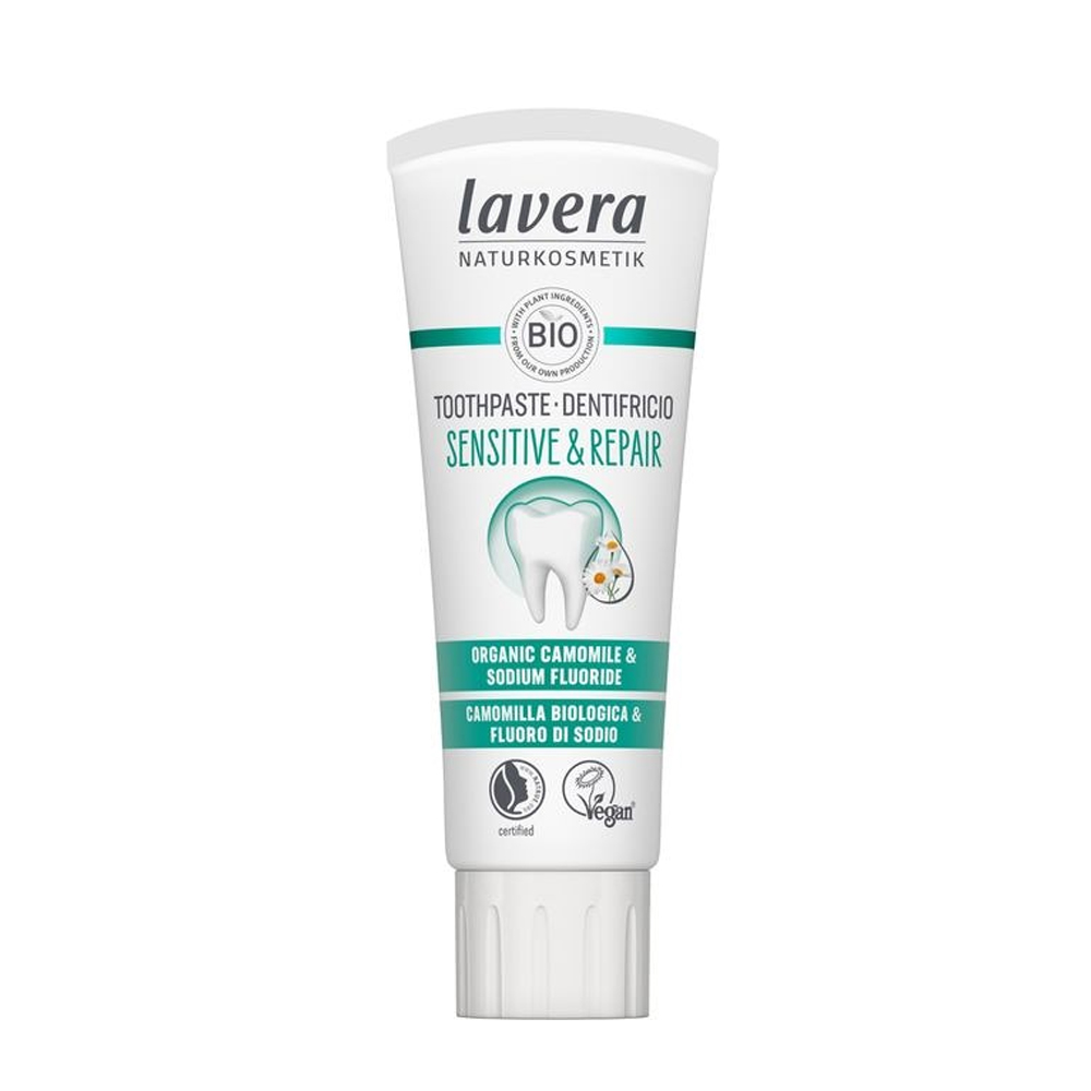 Η οδοντόκρεμα lavera Sensitive & Repair προσφέρει ειδική φροντίδα για ευαίσθητα δόντια, με μια φόρμουλα που επανορθώνει και προστατεύει σε βάθος. Η φυσική αίσθηση καθαριότητας και φρεσκάδας είναι τώρα διαθέσιμη για ευαίσθητα δόντια και υγιή ούλα, με την ποιότητα που προσφέρει η lavera.