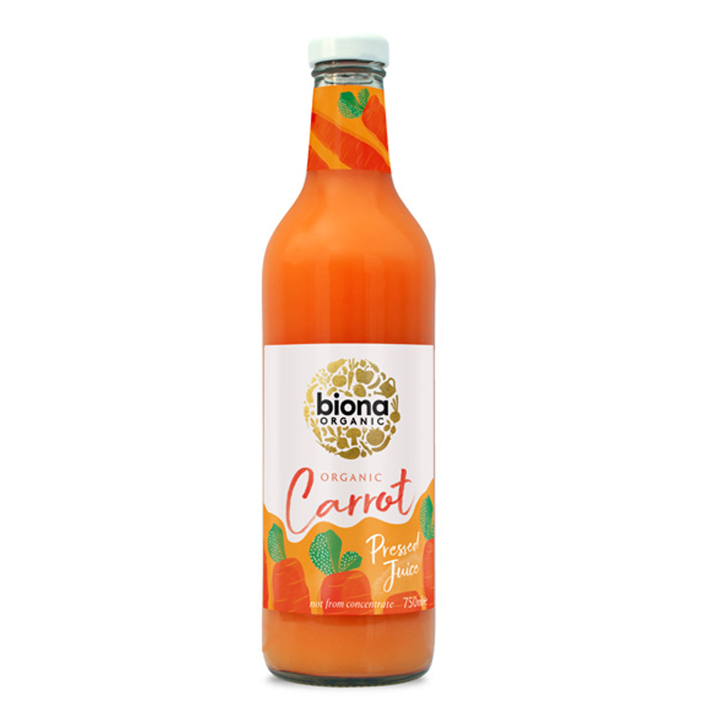 Ο βιολογικός χυμός καρότου Biona αποστάζει όλη την αυθεντική γεύση και την φυσικότητα ενός από τα πιο θρεπτικά λαχανικά στον κόσμο. Τα καρότα προέρχονται από επιλεγμένα βιολογικά περιβόλια, συγκομίζονται και μεταφέρονται στην πλήρη γεύση τους. Ο χυμός καρότου είναι νόστιμος σερβίρεται κατευθείαν από το μπουκάλι και γαρνίρετε με ένα κλαδάκι από μέντα ή μαϊντανό. Κάνει επίσης μια μεγάλη προσθήκη στο πρωινό σας και μπορεί να προστεθεί σε σούπες. Ανακινήστε καλά πριν τη χρήση και μόλις το ανοίξετε διατηρήστε το στο ψυγείο.