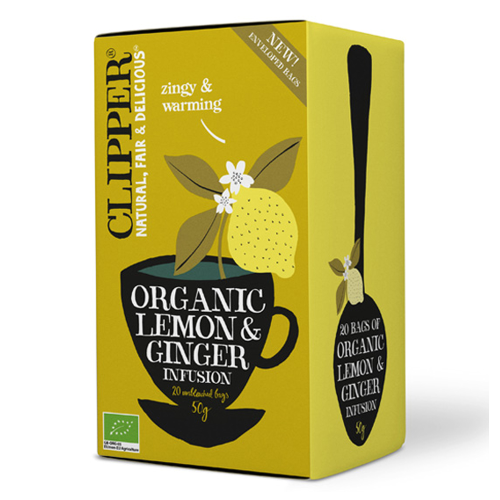 Βιολογικό εκχύλισμα λεμονιού και πιπερόριζας. Η συσκευασία περιέχει 20 ατομικά φακελάκια με σχοινάκι, τα οποία δεν έχουν υποστεί λεύκανση. Έτσι, μπορούμε να απομακρύνουμε τα φακελάκια τσαγιού εύκολα, αλλά και να τα παίρνουμε μαζί μας! Η Clipper εγγυάται προϊόντα από εξαιρετικής ποιότητας και αυστηρά επιλεγμένες πρώτες ύλες χωρίς προσθήκες συντηρητικών, χρωστικών ουσιών και καμία χημική επεξεργασία.