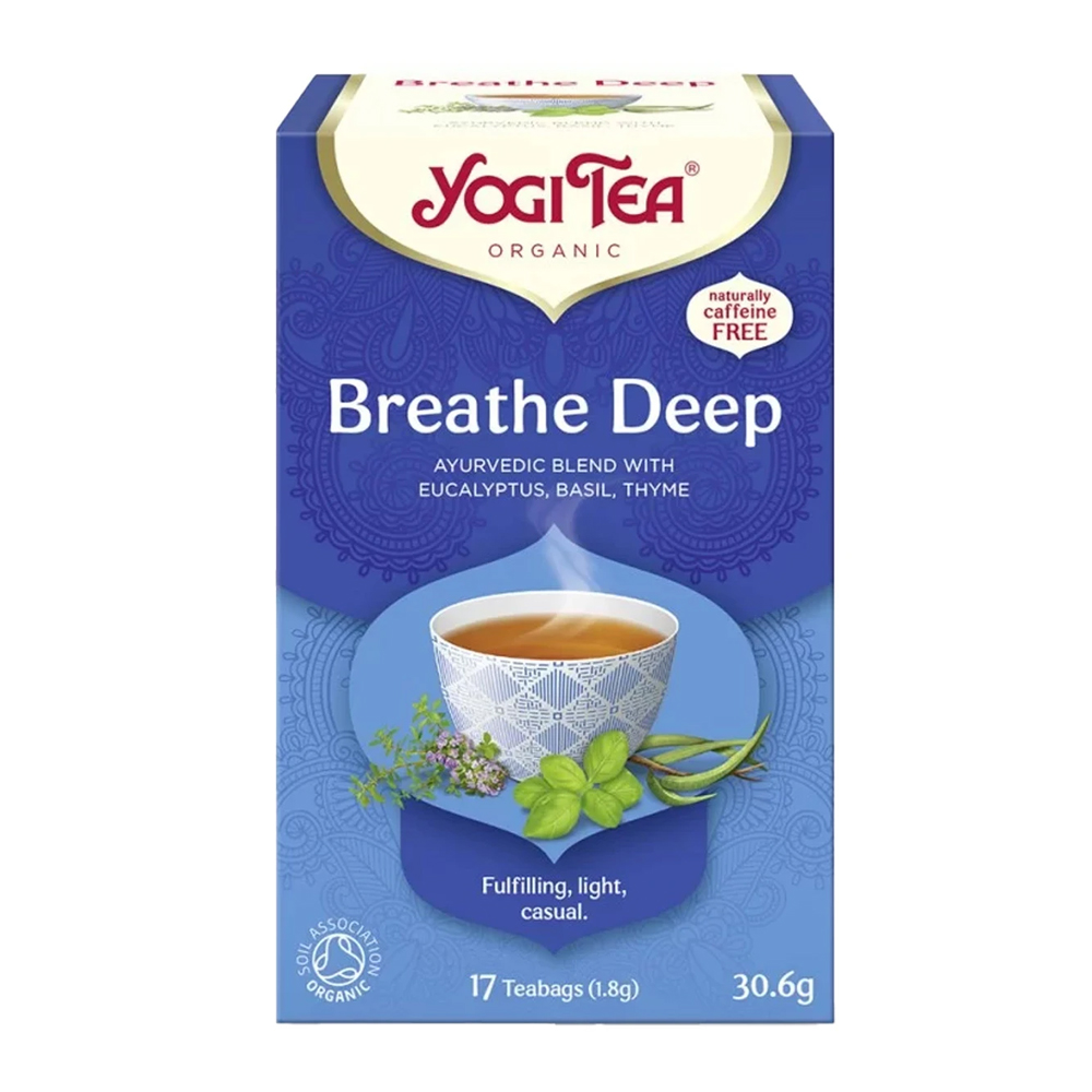 Είναι ένα Αγιουβερδικό μείγμα από βότανα και αρτύματα που παραδοσιακά πίστευαν ότι βοηθούν στην υγιή αναπνοή. Η τεχνολογία των γιόγκι διδάσκει ότι η αναπνοή είναι φορτισμένη με πράνα την λεπτή δύναμη της ζωής. Το πράνα λαμβάνετε από το νερό, την τροφή και τον ήλιο. Παρόλα αυτά οι πίεσεις της καθημερινότητας, η περιβαλλοντική μόλυνση η ακανόνιστη διατροφή περιορίζουν την εισαγωγή του πράνα μέσα μας. Η συνειδητή αναπνοή ιδιαίτερα ή μακριά βαθιά και χαλαρή αναπνοή είναι ο πιο απλός τρόπος για να αυξήσει κάποιος την ενέργεια η το πράνα του, και να νιώθει πιο ήσυχος και συγκεντρωμένος. Το Breathe deep είναι ένα παραδοσιακό μείγμα της Αγιουβερδας με ευκάλυπτο, ίνουλα, βασιλικό, ginger, γλυκόριζα, και άλλα βοηθητικά βότανα. Σε αυτό το ρόφημα μπορεί να προστεθεί ως γλυκαντικό ένα κουταλάκι μέλι που στηρίζει την αποχρεμπτική λειτουργία του σώματος .