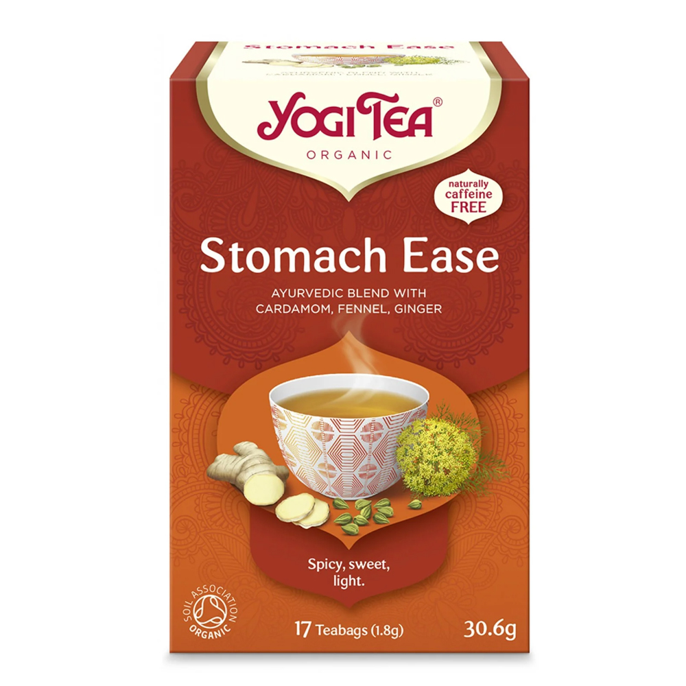 YOGI TEA® Stomach Ease, αυτό το ρόφημα βασίζεται σε βότανα και καρυκεύματα από συνταγή της Αγιουρβέδα, που πιστεύεται ότι βοηθούν στη διαδικασία της πέψης. Η παραδοσιακή Αγιουρβέδα διδάσκει ότι καλά επιλεγμένα τρόφιμα και βότανα μπορούν να έχουν επιρροή στο αίσθημα που νιώθουμε μετά από το γεύμα και κατά τη διάρκεια της ημέρας. Αυτό το ρόφημα περιέχει μάραθο, γλυκόριζα και φύλλα μέντας, βότανα που εκτιμώνται ιδιαίτερα στην Αγιουρβέδα για την ευεργετική τους δράση στην πέψη. Βότανα καυτερά όπως το κάρδαμο, ο κόλιανδρος, το τζίντζερ και το μαύρο πιπέρι εξισορροπούν αυτό το νόστιμο μείγμα. Απολαύστε ένα φλιτζάνι κατά τη διάρκεια του γεύματος ή μετά.