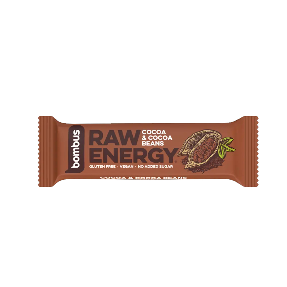 Ωμοφαγική μπάρα Raw Bio Energy με κακάο και σπόρους κακάο της Bombus. Περιέχει επιλεγμένα, μη επεξεργασμένα φυσικά συστατικά. Ο συνδυασμός κακάο και σπόρων κακάο προσφέρει ενέργεια και συγκέντρωση. Δεν περιέχει γλουτένη, λακτόζη και ζάχαρη.