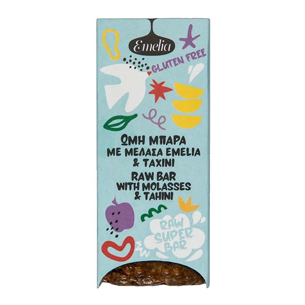 Συστατικά: Ταχίνι Emelia, μελάσα Emelia, μήλο αποηξηραμένο, φυστίκι αράπικο, σταφίδα ξανθή, κανέλα Κεϋλάνης σε σκόνη, αλάτι.