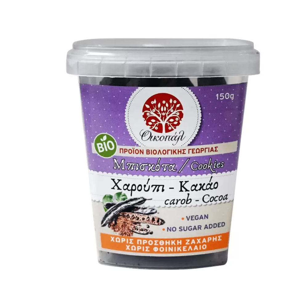 Μπισκότα βιολογικά σε έναν συνδυασμό απίστευτο. Χαρούπι & Κακάο χαρίζουν μια βελούδινη γεύση σε αυτά τα μπισκότα.